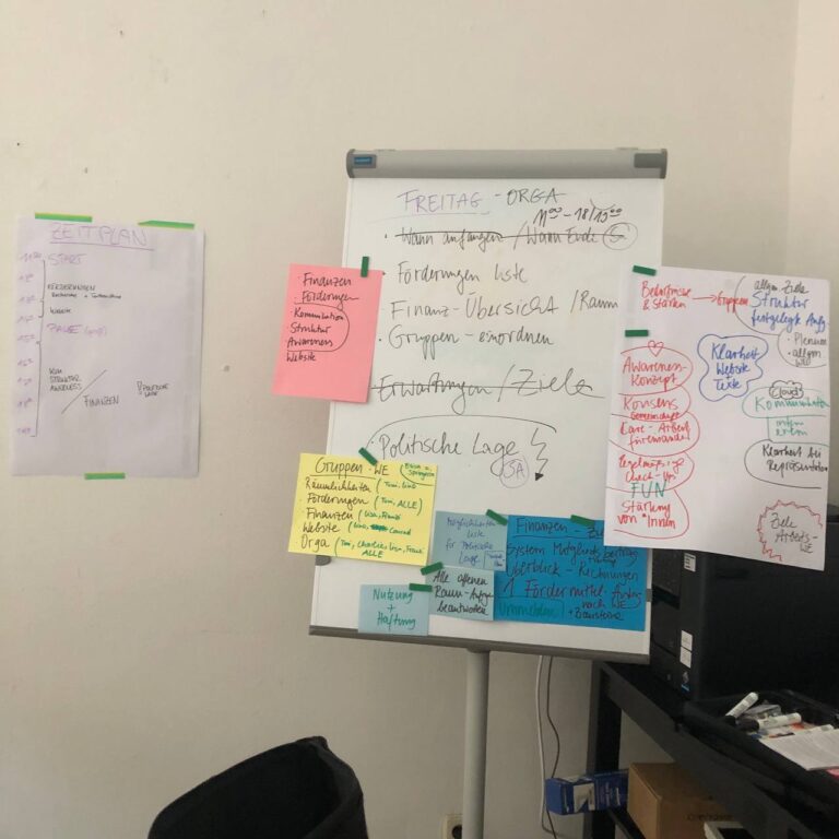 Großer Bestandteil des Wochenendes war einen Plan zu entwickeln, wie wir als Verein uns weiter finanzieren können und welche Fördermöglichkeiten es gibt.